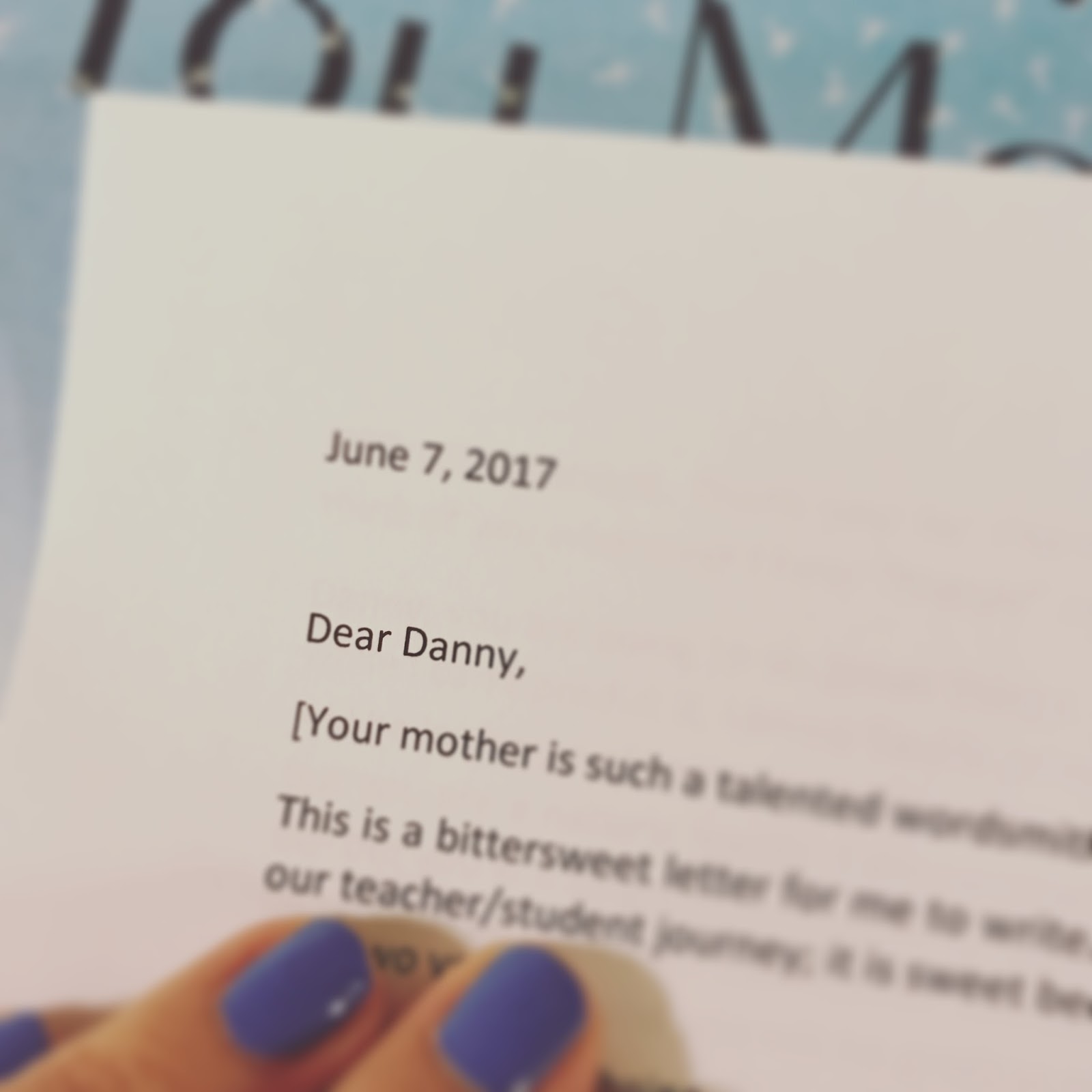 Thank you for understanding that I am not sorry – not the least bit sorry – for what Danny is going to bring into your class and into your life. Thank you for making a place for him in your class and for helping us make the most of this thin moment in the wide, general education, world.